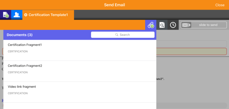 Features within Veeva Approved Email are constructed and inputted using a modular framework. The software admins retain control of the content, providing it to the rep as list of approved messages to choose from. Crucially, this ensures that the communication shared with HCPs is moderated and – as the name states – approved. These modules are referred to as ‘fragments’ within individual emails, as shown in the example below.